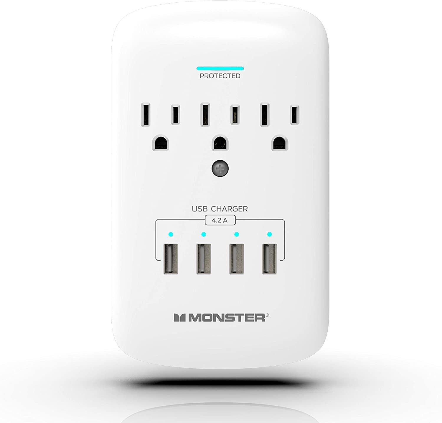 Monster Power Surge Protectors Wall Tap 3 Outlets With 4 Usb Ports Gamestop